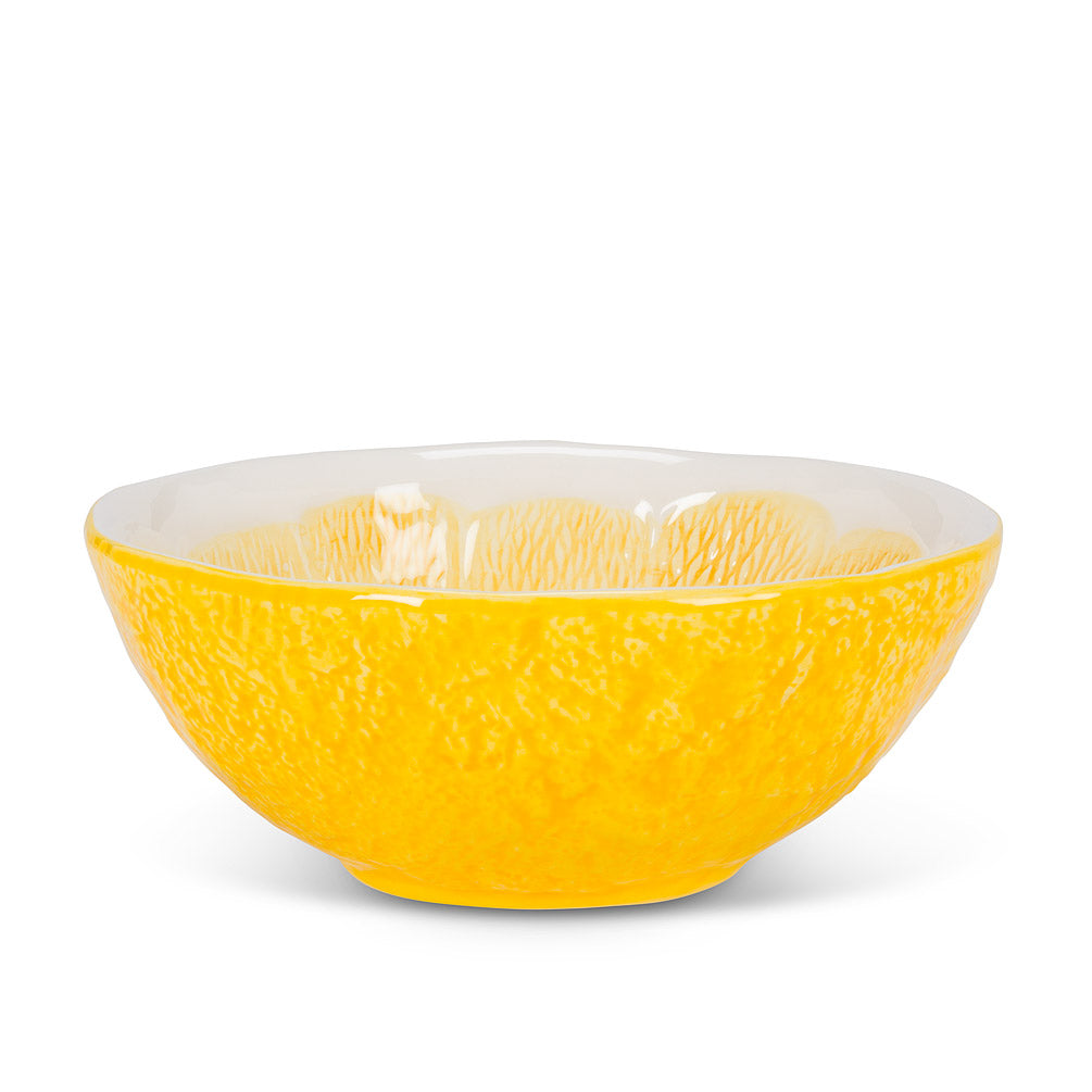 Bring some sun-kissed brightness to your kitchen or dining table with this charming Citrus Bowl in Green or Yellow. Crafted out of ceramic, this beautiful hand-painted bowl features the pebble-like texture of citrus fruit on the outside, with its juicy, oh-so-sweet flesh painted on the inside to add a fun splash of colour to just about anything!