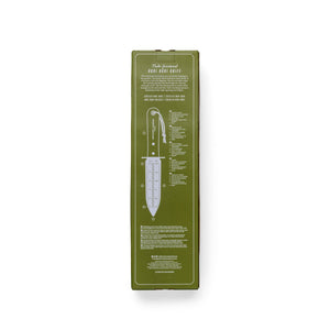 Take home the ultimate tool for multi-tasking in the garden with this Hori Hori Knife from Gentlemen’s Hardware. The dual-sided stainless-steel blade is curved to aid with digging. Use the straight edge for cutting and the serrated edge for sawing through roots with ease using our gardening knife. Use the sharp point to make seed troughs in the soil and the ruler markings ensure planting to the right spacing anddepth.