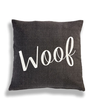 Give your fur baby a cozy place to sleep with this oversize handloomed black pillow bed styled with a dog bone, paw print , heart and an EAT PLAY LOVE sentiment in white typography. Remove polyester fill before washing. Machine wash in cold water, gentle in a laundry bag with similar colors. Do not bleach. Do not tumble dry. Cotton, Polyester.