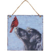 Wooden ornaments from ourChristmas Collection displaying a charming winter scene of a cardinal /Golden Retriever and Cardinal / LabDesign is replicated from original artwork painted onto burlap canvas, giving the art a unique depth and texture. Seasonal ornament features distressed details with coordinating red color on the sides and back. Our Cardinal And Golden ornament is easy to hang for display via attached jute hanger. A rustic winter-themed ornament perfect for seasonal display.