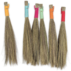These authentic Small Long Slender Whisk Brooms are as functional as they are stylish and eco-friendly! Available in six assorted colours, these whisk brooms are dried, sorted and tied by hand in India, made from natural Himalayan Tiger Grass. Accented with a coloured cotton string handle, hang them as a decor piece or use them to keep counters, tabletops and tight spaces tidy