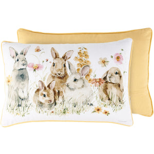 A decorative cotton pillow from our displaying a hand painted design with a wreath of vibrant spring flowers. Design is replicated from original artwork painted onto burlap canvas, giving the art a unique depth and texture. Pillow features complementary black and gray buffalo check pattern on back. Our Floral Highland pillow includes a zipper to easily remove and clean machine-washable pillow cover. Contains polyester filling and is shipped vacuum-sealed for protection and storage. A rustic seasonal home accent perfect for any room.