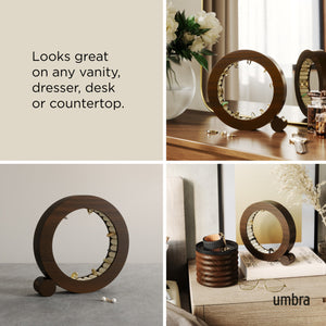 Make a statement with the Umbra FERRIS Jewelry Organizer! This stylish jewelry holder is the perfect gift for yourself or a friend and is designed to hold and protect your rings with velvet-padded pillows. Crafted with renewable wood sources, the FERRIS Jewelry Organizer is easy to keep clean and ready to impress. Its modern design is sure to complement any room in your home and will look great on your nightstand, dresser, or desk. When you’re not actively wearing your rings, the FERRIS Jewelry Organizer will keep them safe and secure. It’s suitable for multiple rings and earrings of different sizes, so no matter your style, you’ll always have a place to store your jewelry. Wood is a unique natural material with variations in tone, texture, and grain. The product may vary from our imagery.