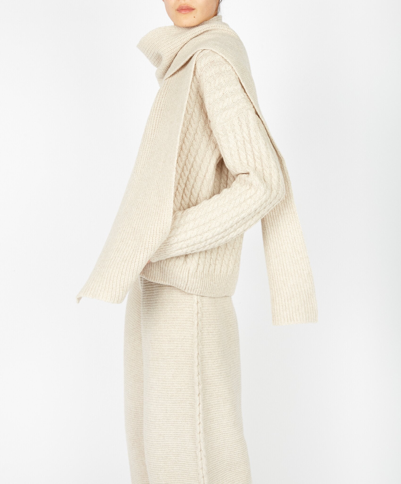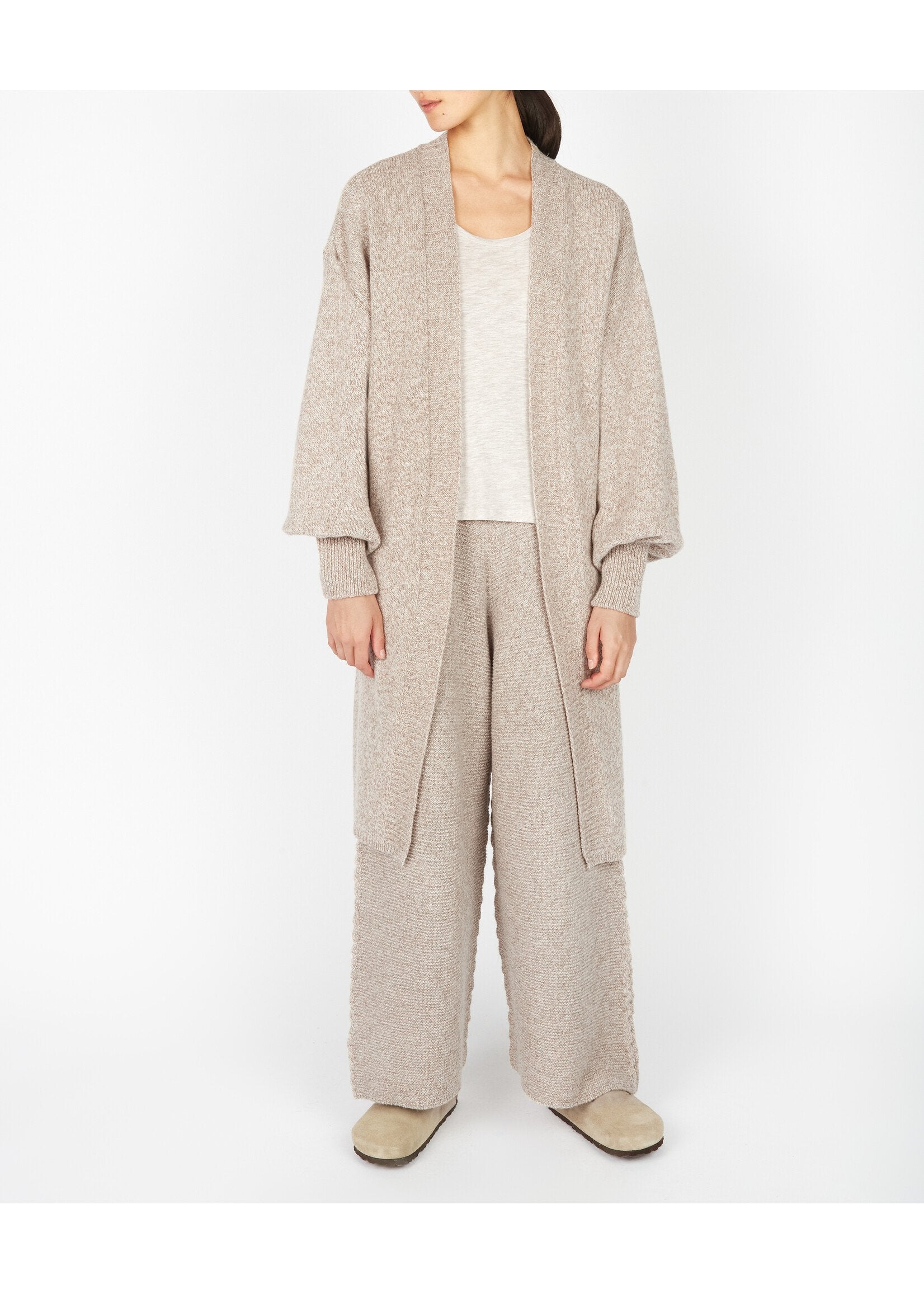 As part of our 'Haven' Collection, the 'Sanderling' jumpsuit is a contemporary, generous garment designed to be relaxed and comfortable, with a slouchy look. its a very versatile piece perfect for lounging or popping out. We recommend sizing up if you are taller in height. Bone is an off white colour. Made with our 100% Soft Touch Fine Merino Wool, a luxuriously soft, warm yarn.