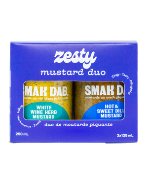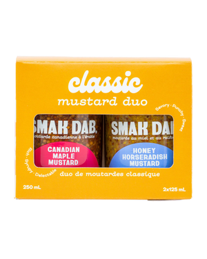 Canadian Maple Mustard:prairie-grown mustard seeds meet 100% pure Quebec maple syrup to create a rich, syrupy, and deliciously Canadian blend that’s a breeze on everything from glazed ham to squash or salmon.