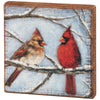A wooden block sign displaying a calming hand painted scene Design is replicated from original artwork painted onto burlap canvas, giving the art a unique depth and texture. Sides and back feature coordinating natural wood with distressed details. These signs are easy to hang via predrilled keyhole slot or can free-stand alone. A charming seasonal home accent with a variety of display options.