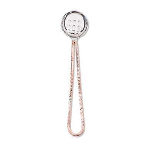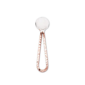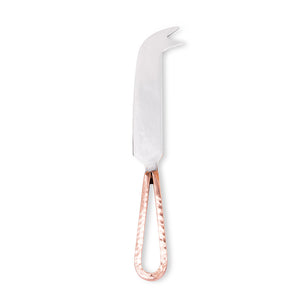 Elevate any entertaining occasion with this stylish Hammered Loop Handle serving accessories. Made of stainless steel with a copper-plated brass handle and subtle hammered details, it’s ideal for serving up alongside any dinner table and charcuterie board. Made in India.