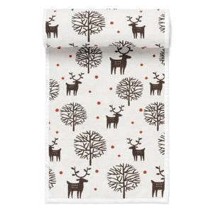 Decorate your home with our simple deer and tree table runner with matching stockings.