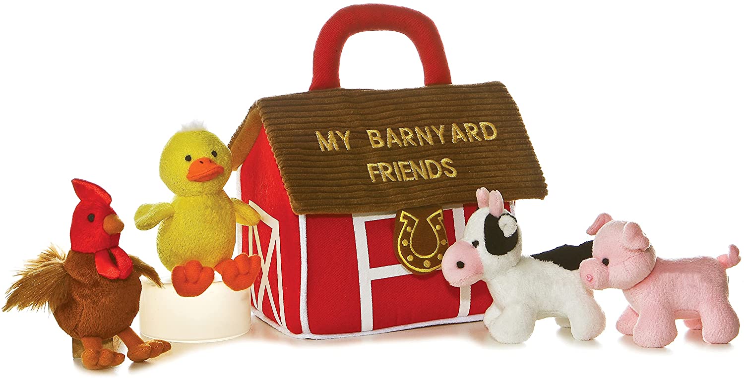 Forest Friends This set features an adorable log cabin stuffed with your favorite forest animals! The squirrel makes a "chitter" sound, the black bear "growls", the raccoon squeaks and the moose rattles