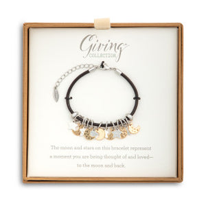 "The hearts on this bracelet/earings represent moments you are being thought of and loved - to the moon and back"