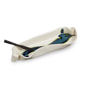 Comes with a rosewood fork to help you catch the slippery olives. All of our pottery is oven, dishwasher and microwave proof as well as food and drink safe. All pieces are available in all glaze colours. Dimensions 11 × 3.5 × 1.5 in.