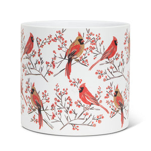 Complement your favourite festive flowers and plants for the holidays with this charming Large Cardinal Pair Planter. Crafted out of ceramic, this white planter features an elegant pattern of male and female cardinals perched on bright berry-bearing branches to help elevate your seasonal decor and give your favourite plants a festive new home.