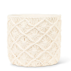 Bring some retro style with a modern twist to your favourite plant or blooms with these Macrame Style Planters. Crafted out of cement, these white circular planter feature the unique pattern and texture of a classic macrame weave for a distinctive complement to your decor