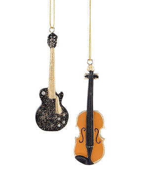 Add a musical touch to your tree this holiday season with this unique Guitar Christmas Ornament. This festive resin ornament features a realistic looking guitar with glitter detailing that will liven up your Christmas tree. Available in 2 assorted styles: Black Electric Guitar, and Gold Acoustic Guitar.