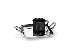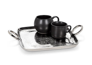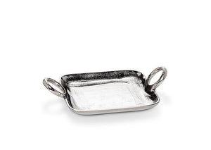 Elevate the way you serve just about anything with these chic Ring Handle Trays. Crafted out of aluminum with a polished nickel and gold finish, these elegant square trays with raised rim and small ring handles are perfect for serving coffee or dessert for one, or simply for use as a stylish pin dish for jewellery, keepsakes and more.