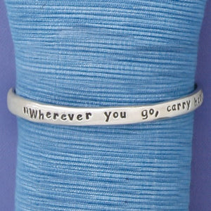 The Pewter Bangle Collection features inspirational words and quotes, making the perfect gift for that special someone in your life. The bangles work great as stackers. and come in 3 sizes small 6cm medium 7cm large 7.5cm