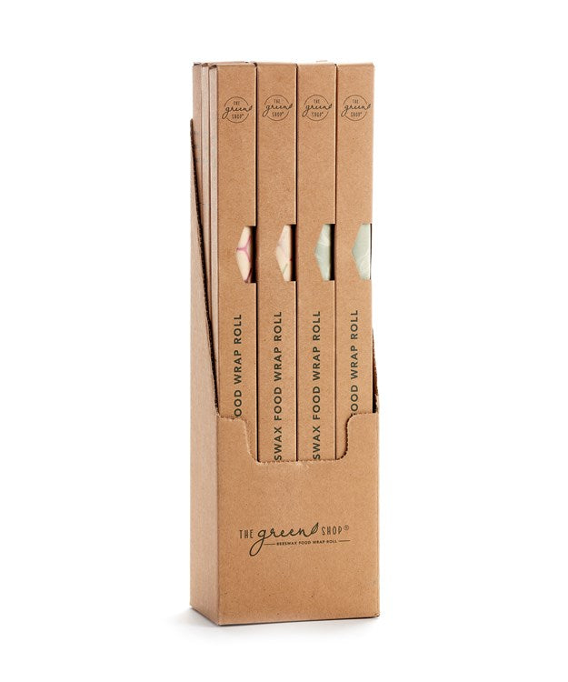 Beeswax roll food wrap (40x14). Available in 2 assorted designs: honeycomb, veggie.  (8.3x8.9x6) . FDA approved. Hand wash in cool water