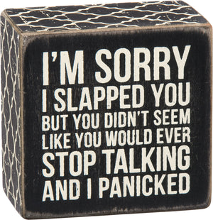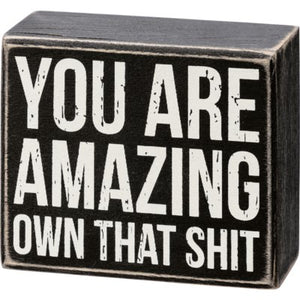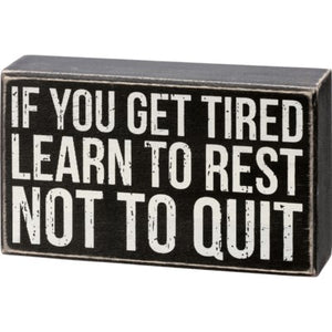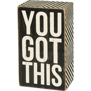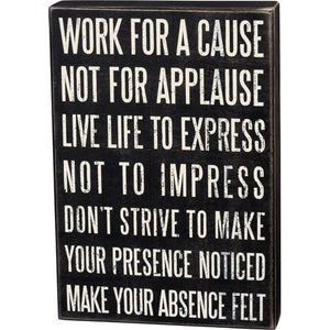 A classic black and white wooden box sign featuring a distressed typography and inspiring sentiments:.Easy to hang or can free-stand alone