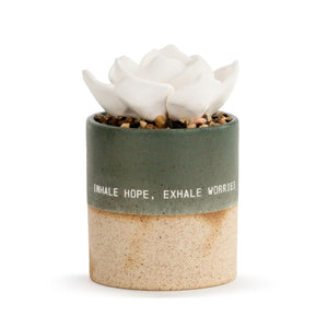 Add a few drops of essential oil(s) to the succulent and the unglazed ceramic with diffuse your favourite scents for hours to come
