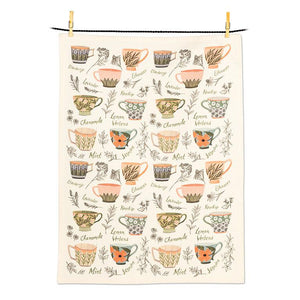 The ivory towel features a uniquely painted array of various tea leaves and teacups for an inspiring complement to your kitchen cleaning and decor.