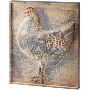 A metal wall decor piece displaying a fun farm inspired sentiment Embossed details as well as a rust finish for an aged appearance.Easy to hang against wall using the included nails and pre-drilled holes in each corner.