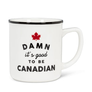 When it comes to enjoying your coffee or tea, there’s no place like this “Home” with Leaf Text Mug. This clean white stoneware mug features striking black text accented with a red maple leaf in place of the “O” — perfect for any morning north of the 39th parallel. Other Canadian-themed stoneware mugs also available.