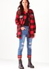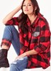 The shacket is the best of both worlds. Effortless style of a shirt and the warmth of a jacket with a brushed felt soft surface, patch pockets, pleather pocket tabs, button front, long sleeve, drop shoulder all expertly tailored in a boxy classic silhouette in a great check for that boy-friend, outdoorsy, look ready for any occasion. Red Plaid. Machine wash gentle, lay flat to dry. 100% Polyester.