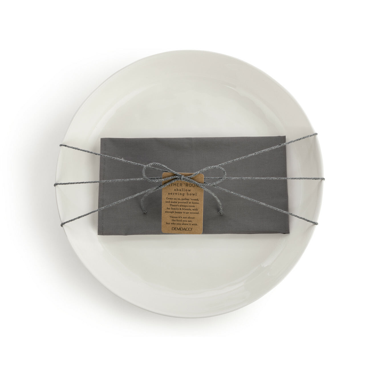 This artisan serving bowl was inspired by the sweet moments of an at-home gathering. This serving bowl will match any formal or casual table setting. Designed in a warm bone color with a light-hearted sentiment to bring a smile to your guests’ faces.