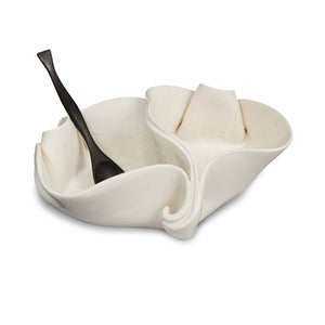 Fill up one side, then empty it to fill up the other side with empty shells from the full side. Do you follow me so far? Are you half-full or half-empty? Comes with a rosewood spoon.