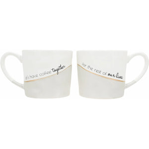 PREMIUM QUALITY: 15 oz coffee mugs made from premium-quality stoneware. These elegant coffee cups have a dimpled hand-made feel texture with a smooth-edge easy-to-hold ergonomic handle, perfect for a good grip. The overall finish is matte. Mugs face towards you in the right hand and away in the left.